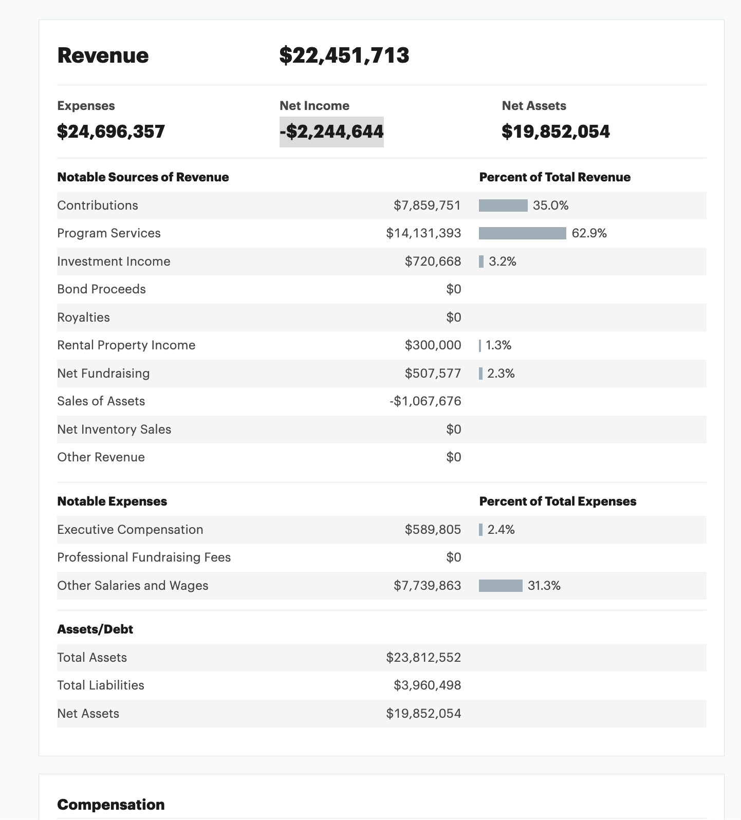 1. Negative Net Income: The zoo reported a negative net income of -$2,244,644, indicating that its expenses exceeded its revenue during the reporting period. This shortfall raises questions about the organization's financial management and its ability to cover operational costs.